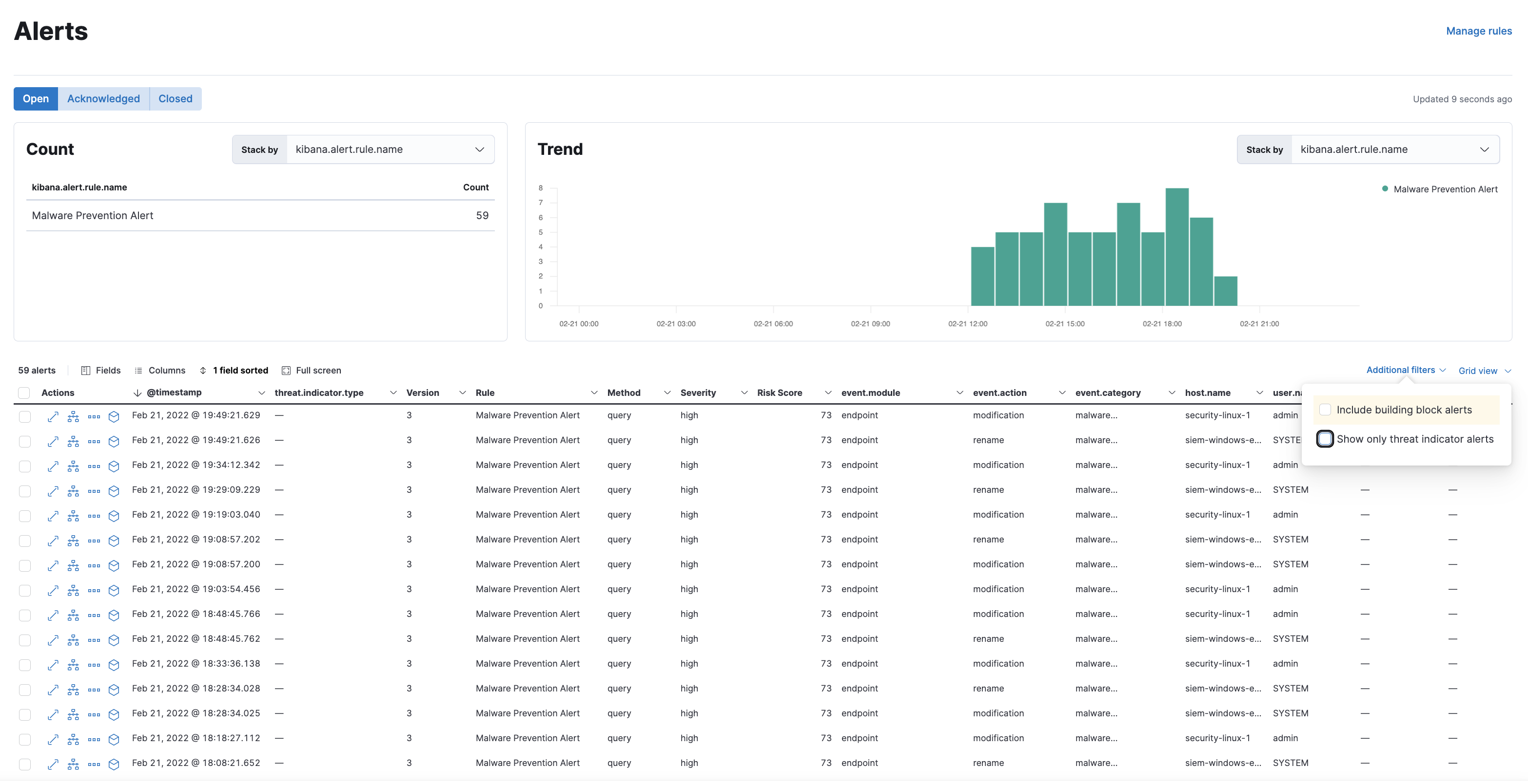 Prebuilt rules are built by the elastic protections team so that customers can start enabling it immediately and they can have an out of the box experience with threat intelligence in their platform. The rules are created with the latest information and the important techniques. Up until 7 there was only the filebeat rule, which have resulted in a lot of SDHs. In the 8 release we have opted to ship multiple rules so that they can be disabled at will if any of them start behaving badly.