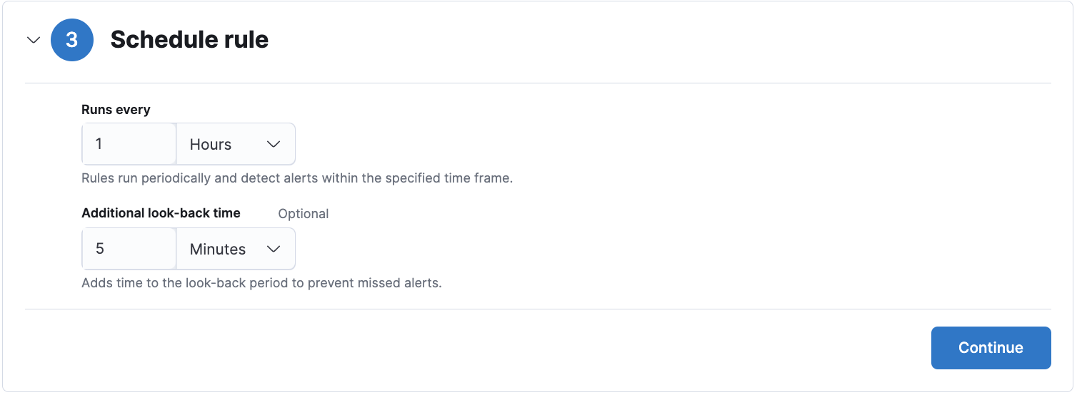 Multiple indices are specified by default as the value of this setting, and they are filled into the “index” input within the first step of the Create Rule UI. Left unchanged, these indices will be queried during the rule execution for source events.